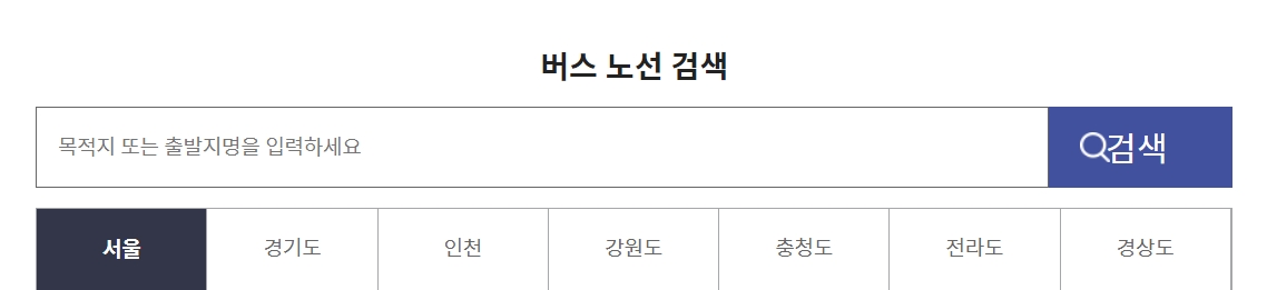 아래 링크를 통해 안내 사이트에 들어가시면 위와 같은 버스노선 검색 란이 나옵니다.