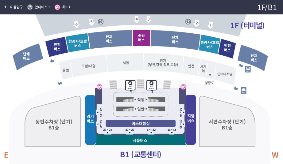 1층 GATE 4번, 6번, 7번, 8번, 11번, 13번 옆 매표소